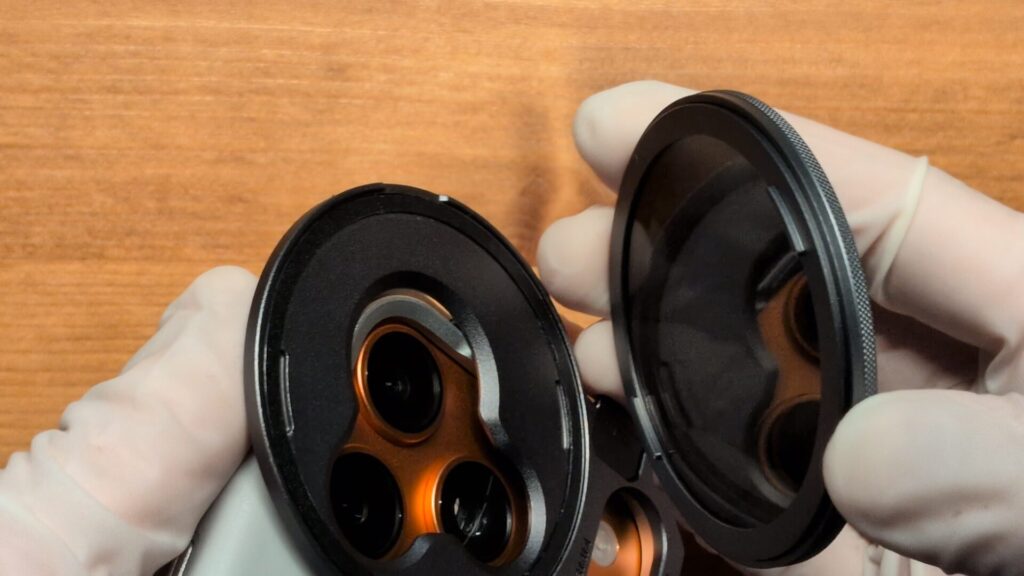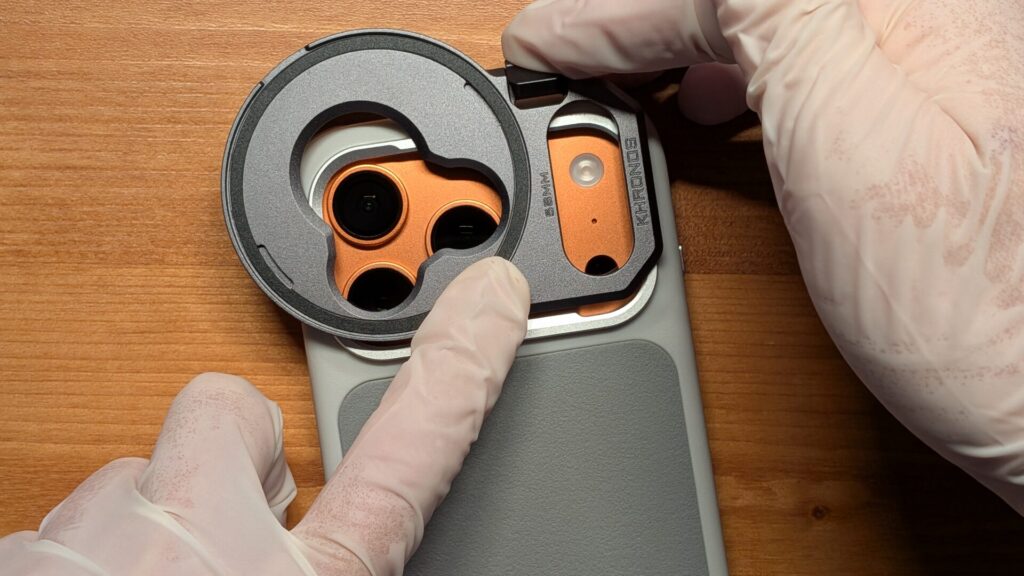 特筆すべきは、1倍レンズ(メインカメラ)での映り込みがないことだ。 実は以前、似たコンセプトのSmallRig製ケースを試した際は、1倍レンズでフィルター枠が右端にぼんやり映り込むという致命的な問題があった。TILTAのこのシステムではその心配がない。これだけで選ぶ価値がある
